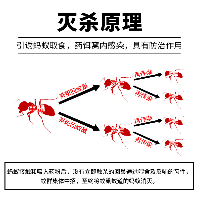 室内3克/平方米撒布室外红火蚁25-33克/巢撒施
