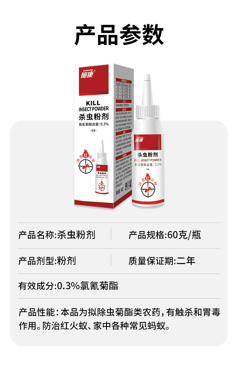郁康0.3%氯氰菊酯杀虫粉剂(红火蚁)60g